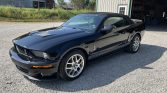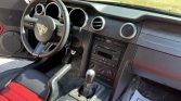 This 2007 Ford Mustang Shelby GT500 convertible has 686 miles and is powered by a supercharged 5.4-liter V8 paired with a six-speed manual transmission. The car is finished in black over Charcoal Black and Crimson Red leather upholstery and was acquired by the current owner in 2024. Equipment includes a limited-slip differential, 18″ forged alloy wheels, a black soft top, a Shaker 1000 sound system, a CD stereo, cruise control, and air conditioning.