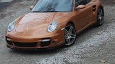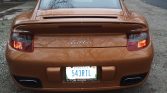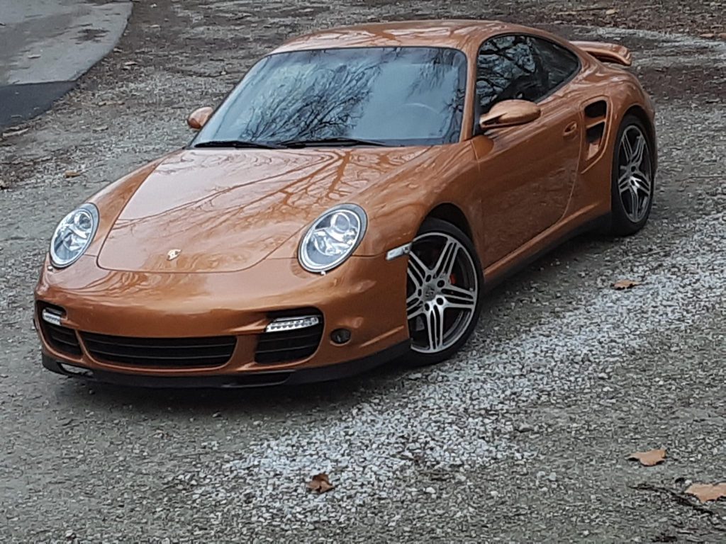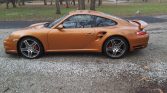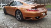 This 2007 Porsche 911 Turbo coupe is finished in Nordic Gold over brown leather and is powered by a twin-turbocharged 3.6L flat-six paired with a five-speed Tiptronic S automatic transaxle and all-wheel drive. Equipment includes 19″ wheels, power-adjustable and heated front seats, bi-xenon headlights, a power-operated sunroof, automatic climate control, navigation, and a Bose sound system.