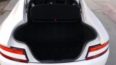 The car is finished in white and equipped with a V8 Vantage GT4-style carbon-fiber body kit that includes a front splitter, side skirts, a decklid spoiler, and a rear diffuser. Additional exterior features include HID headlamps with LED aLents, a black grille, and rear parking sensors.
