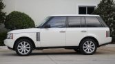 This third-generation Range Rover is finished in Chawton White Solid (603) and is equipped with adaptive bi-xenon headlamps, heated rain-sensing windshield wipers, a power glass sunroof, fog lights, electric fold-flat side mirrors, and window tint.