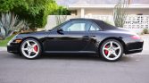 This 2008 Porsche 911 Carrera S is finished in black over a Black and Stone Gray leather interior and is powered by a 3.8-liter flat-six paired with a six-speed manual transaxle. Additional equipment includes the Sport Chrono Package Plus, a black convertible top, a speed-activated rear spoiler, automatic climate control, a Bose audio system, a Porsche navigation system, stainless-steel exhaust pipes, heated and power-adjustable seats, and 19″ alloy wheels.