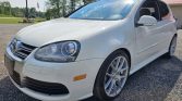 This 2008 Volkswagen R32 is one of 5,000 units produced for the model year, and it is finished in Candy White over Anthracite leather. Power is from a 3.2-liter VR6 that drives all four wheels through a six-speed DSG automatic transaxle and a 4MOTION all-wheel-drive system, and other equipment includes a sunroof, bi-xenon headlights, 18″ Niche wheels, heated front sport seats, navigation, an in-dash CD changer, cruise control, and automatic climate control.