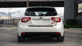 The multifunction steering wheel frames red instrumentation consisting of a 160-mph speedometer and an STi-branded tachometer with a 6,700-rpm redline. The digital odometer indicates under 25k miles.