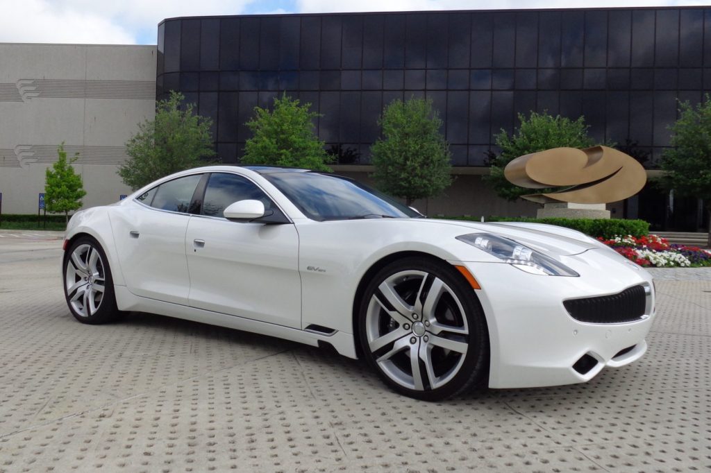 This 2012 Fisker Karma EcoSport is finished in White Sand Pearl over black leather, and power is provided by dual rear-mounted electric motors fed by a 20.1-kilowatt-hour lithium-ion battery pack and a range-extending turbocharged 2.0-liter Ecotec inline-four. Equipment includes a limited-slip differential, heated front and rear seats, a touchscreen infotainment system with navigation, a solar roof panel, bi-xenon headlights, Brembo disc brakes, and factory 22″ wheels. An oil change was performed and the starting battery is said to have been replaced in 2021.