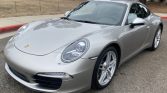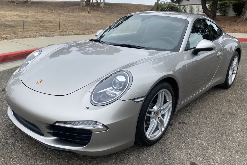 This 2012 Porsche 911 Carrera coupe is finished in Platinum Silver Metallic over black leather and is powered by a 3.4-liter flat-six paired with a seven-speed manual transaxle. Equipment includes 19″ wheels, LED headlights with the Porsche Dynamic Light System, a sunroof, heated and ventilated power-adjustable front seats, the Sport Chrono package, a Bose surround sound system, and a six-disc CD changer.