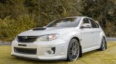 This 2012 Subaru Impreza WRX STi is finished in white over black leather and Alcantara, and it is powered by a turbocharged and intercooled 2.5-liter flat-four paired with a six-speed manual gearbox, an all-wheel-drive system, and a pair of limited-slip differentials. Features include 18″ BBS wheels, Brembo brakes, heated front seats, and automatic climate control, and the car has been modified with an Invidia N1 cat-back exhaust system, a short-shift kit, and Cusco chassis and suspension components.