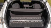 The five-door body is finished in Satin White Pearl and features a hood scoop, a roof spoiler, clear taillight lenses, fog lights, HID headlights, and dual exhaust outlets. Rally Armor mud flaps have been added.