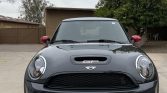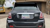 JCW GP edition Minis came finished in Thunder Grey Metallic (B58) with a silver roof, red and black accents, and GP graphics and badging. Additional features include a hood scoop, a rear hatch spoiler, a rear diffuser, bi-xenon headlights, fog lights, brake cooling ducts, and twin exhaust outlets. The seller states that chrome hatch trim was added and ceramic coating was applied to the paint under previous ownership. Additional modifications include window tint and paint protection film on the forward facing surfaces, door edges, and door cups.
