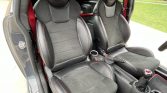 The cabin features heated and manually adjustable Recaro seats that are trimmed in black leather with Alcantara center inserts and red stitching. Rear seats were omitted from the factory for weight savings, and additional features include GP dash badging, a rear chassis brace, an enclosed rear storage box, push-button start, automatic climate control, a AM/FM/CD stereo, red seatbelts, and black floor mats with red piping.