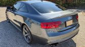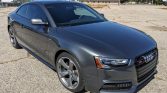 This 2015 Audi S5 Prestige coupe is modified with Unitronic ECU and TCU tunes as well as an AWE exhaust system, an APR heat exchanger, an Integrated Engineering intake, and aftermarket crankshaft and supercharger pulleys. It is finished in Daytona Gray Pearl Effect over black Nappa leather and is powered by a supercharged 3.0-liter V6 that sends power to all four wheels through a replacement seven-speed S tronic dual-clutch automatic transaxle and Quattro all-wheel drive. Equipment includes the Black Optic and Fine Nappa Leather packages as well as a panoramic sunroof, adaptive xenon headlights, 19″ five-arm rotor wheels, heated power-adjustable front seats, dual-zone automatic climate control, and a Bang & Olufsen sound system.