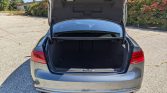 The heated power-adjustable front seats are upholstered in black Nappa leather complemented by Carbon Atlas trim. Amenities include cruise control, dual-zone automatic climate control, a Bang & Olufsen sound system, Audi Music Interface (AMI), and Audi MMI infotainment with Navigation Plus.