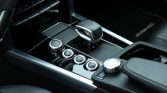 The cabin features seats upholstered in black Nappa leather (821) with contrasting silver stitching, matching door panel inserts, silver seat belts, and carbon fiber trim on the dashboard and doors. The heated and ventilated front seats feature dynamic bolsters, and additional amenities include heated rear seats, Keyless-GO, powered rear window shades, COMAND infotainment with navigation, and a Bang & Olufsen sound system. Driving aids include Parktronic with Active Parking Assist, a surround-view camera, Distronic Plus cruise control, active blind spot and lane keeping assist, and cross-traffic assist.
