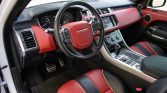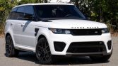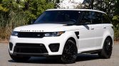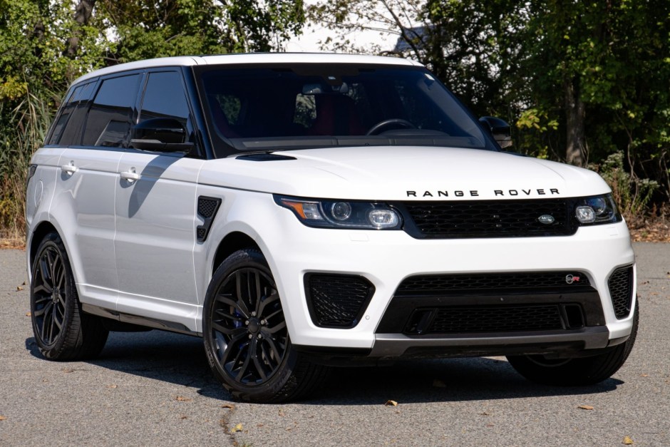 …This 2016 Land Rover Range Rover Sport SVR is powered by a supercharged 5.0-liter V8 that drives all four wheels through an eight-speed automatic transmission and a dual-range transfer case. The truck has 17k miles and is finished in Fuji White over Ebony and Pimento leather upholstery. Equipment includes a panoramic sunroof, xenon headlights, parking sensors, 21″ Style 517 wheels, heated and ventilated power-adjustable front seats, heated rear seats, a Meridian sound system, adaptive cruise control, and navigation.