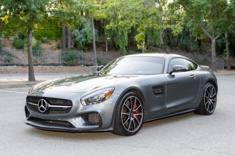 This 2016 Mercedes-AMG GTS is an Edition 1 example that was originally delivered to Mercedes-Benz of Pleasanton, California, and was acquired by the seller in 2018. The car is finished in Selenite Grey over black Nappa leather and microsuede, and it is powered by a twin-turbocharged 4.0-liter V8 paired with a seven-speed dual-clutch transaxle. Equipment includes the AMG Aerodynamic Package, staggered-diameter AMG wheels, a fixed rear spoiler, a carbon fiber roof panel, COMAND infotainment, the Lane Tracking…
