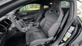 Factory 19″ carbon-fiber wheels are finished in black and save 13 pounds per corner compared to the standard GT350 items. Michelin Pilot Sport Cup 2 tires are fitted, and the car is equipped with a MagneRide damping system, independent rear suspension, and line-lock launch control. Braking is handled by red-painted Brembo calipers and two-piece vented rotors.