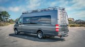 Power is routed to all four wheels through a five-speed automatic transmission. Tanks for the water and liquid propane systems are mounted to the underbody.