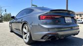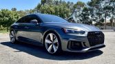 This 2019 Audi RS5 Sportback is finished in Daytona Gray Pearl Effect over black Nappa leather upholstery, and power is provided by a twin-turbocharged 2.9-liter V6 linked to an eight-speed automatic transaxle and a Quattro all-wheel-drive system. Equipment includes the Dynamic Package, 20″ forged wheels, Dynamic Ride Control, carbon-fiber trim, heated and massaging front seats, three-zone climate control, and a Bang & Olufsen sound system.