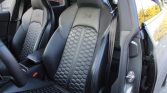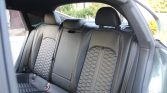 The heated, massaging, and power-adjustable front sport seats are upholstered in black Nappa leather with Rock Gray honeycomb-pattern stitching, while carbon-fiber trim accents the cabin. Additional amenities include driver’s seat memory settings, Audi Side Assist, Audi Pre Sense, three-zone automatic climate control, navigation, and a Bang & Olufsen sound system.
