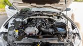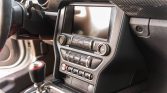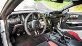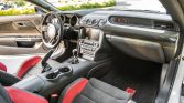 The black 19″ carbon-fiber seven-spoke wheels are mounted with Falken Azenis RT660 tires, and a spare set of Michelin Pilot Sport Cup 2 tires is included in the sale. The R-specification suspension features a MagneRide damping system, and braking is handled by two-piece brake rotors with red Brembo calipers at all four corners. Factory adjustable camber plates, Steeda jacking rails, and front and rear tie-downs are equipped, and a set of uninstalled strut top mounts are included in the sale