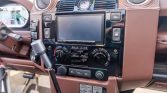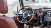 Black-finished 16″ Zu five-spoke alloy wheels are mounted with General Grabber tires, and a matching spare is affixed to a powder-coated swing-away carrier out back. The truck is equipped with Terrafirma suspension components, and the galvanized steel chassis features a front skid plate as well as TDCi solid axles with differential guards. Stopping power is provided by silver-painted calipers over cross-drilled rotors at all four corners.