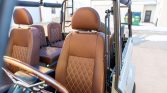 A quartet of jump seats trimmed in matching leather upholstery are mounted in the rear cargo area, which features a wood floor panel.