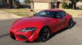 The 19″ forged aluminum wheels are wrapped in staggered-width Michelin Pilot Super Sport tires. The car rides on an Adaptive Variable Suspension (AVS) system and stopping power is provided by four-wheel disc brakes with Supra-branded four-piston Brembo front calipers.